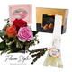 Bundled with the petite Eiffel Tower 30 ML Eau de Parfum 💯 made in France, a heart box of small assorted chocolates (or chocolates of equivalent price) and a beautiful bouquet of 3 assorted roses.
