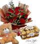 A bundle gift of a lovely bouquet of 3 sunflowers, chocolate mousse cake, or any available chocolate cake, and I love you balloon.