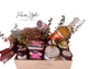 A unique and sweet bundle of heart boxes 6 Roses, 24 Ferrero chocolates, and 5 assorted colors of petite teddy bears (approximately 2.5-3 inches)