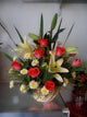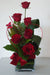 6 pieces of lovely Red Roses in a glass vase accented with premium fillers, foliage, and accessories.