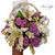 This is a basket arrangement of mixed white, pink, purple and lavander blooms.