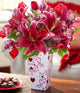 This pretty arrangement is associated with innocence, reverence and royalty.