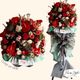 This is a brilliant and sunny color wreath of assorted yellow flowers such as Lilies, Sunflowers, Roses, Lisianthus, Gerberas, Carnations, Dendrathemas, fillers and foliage. This can be an Inauguration gift or a sympathy tribute.