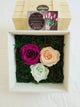 This is an arrangement of 3 Red Roses, 3 Pink Carnations, Miniature Carnations, White daisies, Dendrathemas in a clear vase or hand-tied bouquet with a small cute and huggable bear and a small chocolate.