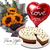 A bundle gift of a lovely bouquet of 3 sunflowers, chocolate mousse cake, or any available chocolate cake, and I love you balloon.