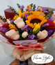 Versatile and popular basket arrangement of yellow and pink daisies with added Carnations or Gerbera daisies, or roses, premium fillers and foliages. This can also be in other colors, red, orange, yellow, white and purple. This flower basket make someone's day truly a brighter and special day.