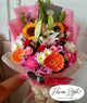 A lovey hand tied bouquet of premium and imported blooms: European roses, Tulips, sunflowers, fillers and foliage.