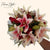 This is a beautiful round bouquet of mixed of White and Red blooms. Pink lilies/ Stargazers and Red Roses are combined with premium fillers and foliage.